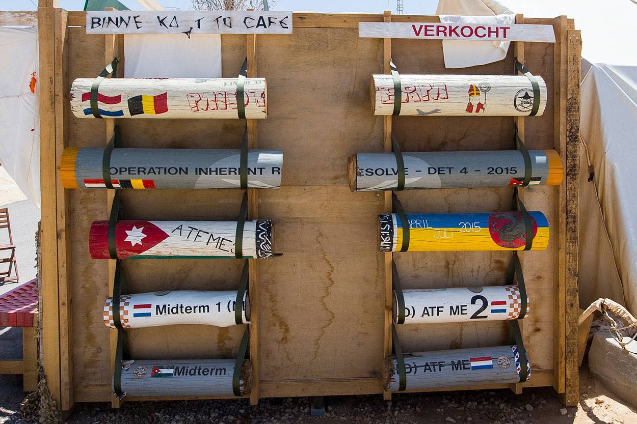 Ik draag tijdens deze voorlopig laatste ATF ME-rotatie dus eigenlijk 2 petten, ondersteuning bij de missievoorbereiding en de redeployment. Uiteraard hebben nu de missies de hoogste prioriteit, maar we zijn ook al bezig de redeployment voor te bereiden. We maken een scheiding tussen wat mee naar Nederland gaat en welke spullen tijdelijk worden overgedragen aan de Belgen. Dit maken we inzichtelijk door de artikelen die achter blijven te labelen met stickers. Daarnaast hanteren we het zogenoemde ‘aggresive housekeeping’. Dit houdt in dat we in overleg met de andere S-hoofden bekijken we wat er niet meer nodig is en dus nu al terug naar Nederland kan worden gestuurd.
