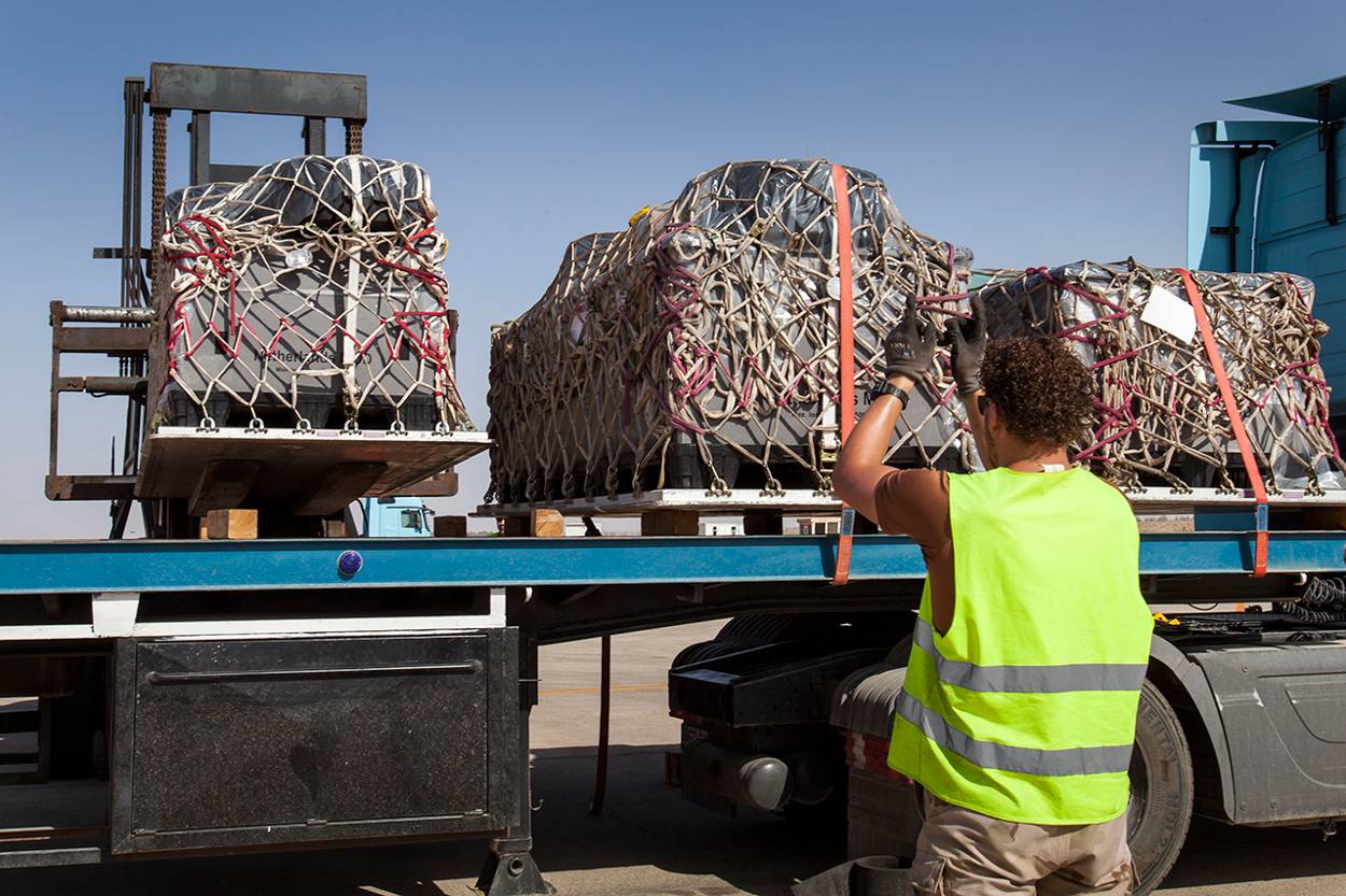 De redeployment is, zoals altijd, een vak op zich. In totaal gaan er per schip 80 containers terug. Dit is materiaal dat in Nederland niet meteen dringend nodig is. “Waardevolle zaken zoals computers en wapens gaan per ‘luchtpost’; dat gaat om ruim 300 pallets”, vertelt majoor Arjen van de Redeployment Eenheid. Met de Belgen zijn afspraken gemaakt over de spullen die achterblijven. Tijdens de verhuizing speelt SAP, het systeem voor bedrijfsvoering van de Nederlandse Defensie, een belangrijke rol. Veel items staan al in dit systeem vermeld evenals de basis waar ze naartoe moeten. Foto: sergeant 1 Eva Klijn