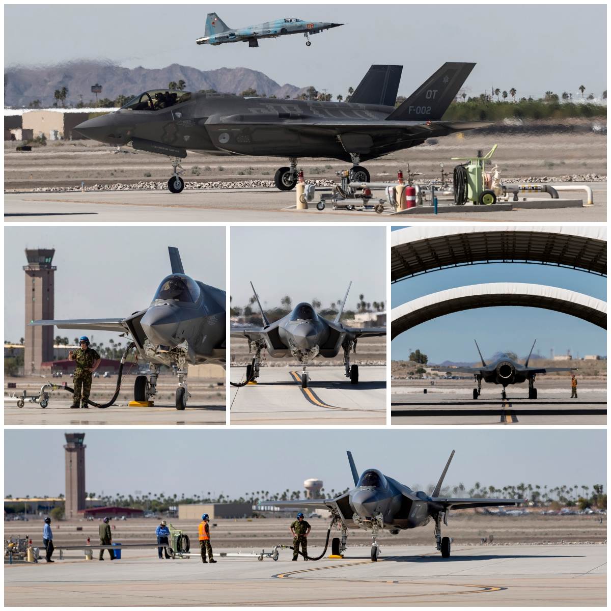 Met 2 van die 5 minuten-windows vliegt het detachement op zondag 1 wave. De rest van BE-2 en 1 bestaat gemiddeld uit 3 waves: overdag 1 met 8 F-16’s (4 vanaf DM en evenzoveel vanaf Tucson) ruim 2 weken bijgestaan door de 2 Nederlandse F-35’s van Edwards. Een perfecte mogelijkheid voor de integratie van 4e en 5e generatie, zo geeft de detco aan. “F-35’s werken met zelfde dreiging als wij en kunnen ons heel goed ondersteunen door die uit te schakelen of ons eerder te waarschuwen.”
