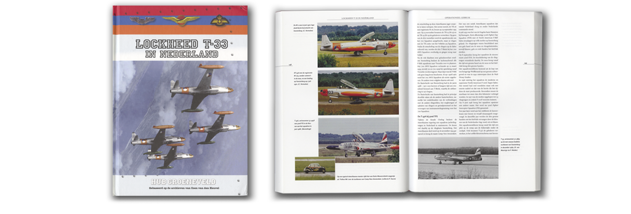 ‘Lockheed T-33 in Nederland’ met ISBN 9789088421679, is geschreven door Hub Groeneveld en gebaseerd op de archieven van Coen van den Heuvel. De hardback op formaat 21,5 x 30,5 cm is uitgegeven door NL Books. Het boek telt 340 pagina’s met Nederlandse tekst, en is voorzien van vele honderden zwart-wit en bijna 100 kleurenfoto’s en tientallen afbeeldingen. Het kost € 42,50. Kijk voor meer informatie op www.aviation-warbooks.nl