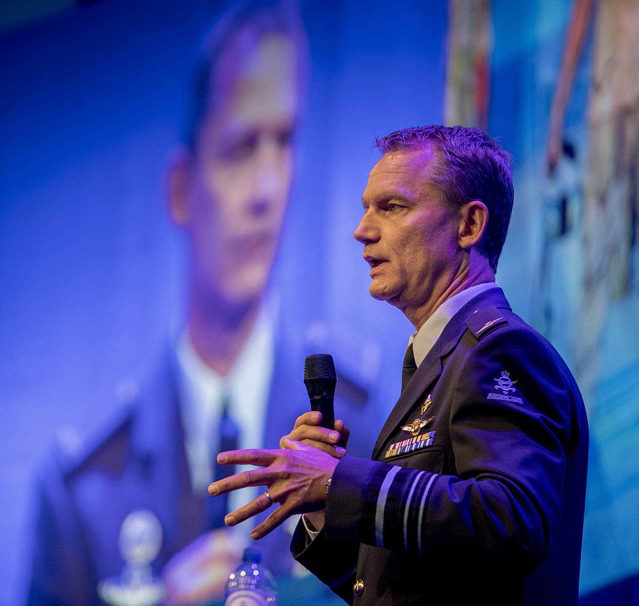 De wereld is dus onrustig en verandert snel. Luyt: “Als luchtmacht moeten we mee veranderen, willen we morgen en in de toekomst airpower kunnen blijven leveren. Want de manier waarop we vandaag zaken doen, is niet goed genoeg voor morgen. De nieuwe werkelijkheid dwingt ons tot transformatie. Nieuwe platformen en nieuwe sensoren invoeren en alles eruit sleuren wat erin zit. En als er 1 domein is waarvoor alle krijgsmachtdelen een oplossing nodig hebben, dan is dat wel cyber. Daarbij hebben we veel mankracht nodig om alle informatie te kunnen verwerken. Een grote uitdaging op weg naar die 5e generatie. 1 ding is heel duidelijk; daarvoor hebben we alles en iedereen nodig. Industrie, kennisinstituten en andere krijgsmachtdelen. We kunnen het als luchtmacht niet alleen.”