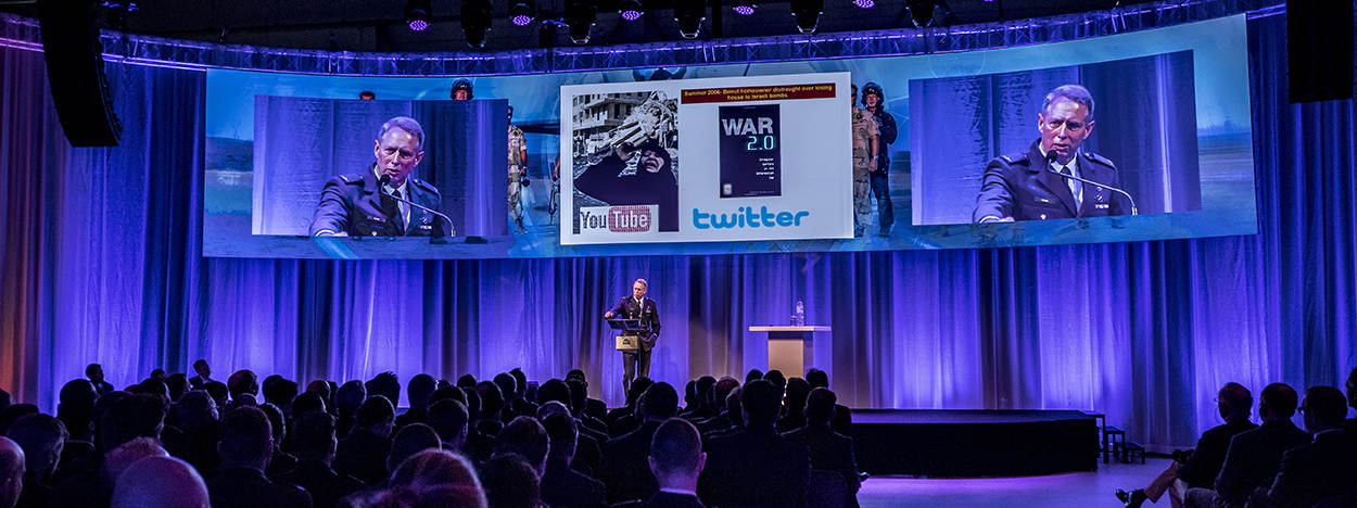 Brigadegeneraal prof. dr. Paul Ducheine (NLDA) sneed het onderwerp cyber aan en alles wat daarmee samenhangt. “Gaat u manoeuvreren in een informatie-omgeving”, vraagt Ducheine de aanwezigen. Zijn antwoord: “Duhûh. Het is geen vraag. U doet het dagelijks. Cyber is geen ver van ons bed show. De informatieomgeving doorsnijdt alle fysieke lagen. Een hacker met een computer kan daarom net zoveel schade veroorzaken als een gevechtseenheid. Ik heb potentieel wereldwijd bereik als ik verbinding heb. En een batterij”. “Cyber brengt een oorlog ver weg, dichtbij”, geeft Hans Folmer, Commandant Defensie Cyber Commando aan. “Maar omdat ontwikkelingen zo snel gaan, zullen we op dit gebied de komende jaren nog niet volledig operationeel zijn.”