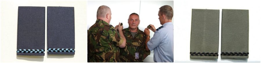 De adjudant draagt nu dezelfde rangonderscheidingstekens als de vaandrig en is het dus vaak lastig te zien te of het om een adjudant of om een vaandrig gaat. Voor beter onderscheid greep het CLSK terug naar een stukje historie: de blokstreep. Die werd in het verleden al door de adjudanten gedragen. Wel is de blokstreep nu iets moderner uitgevoerd. Foto’s: KLu