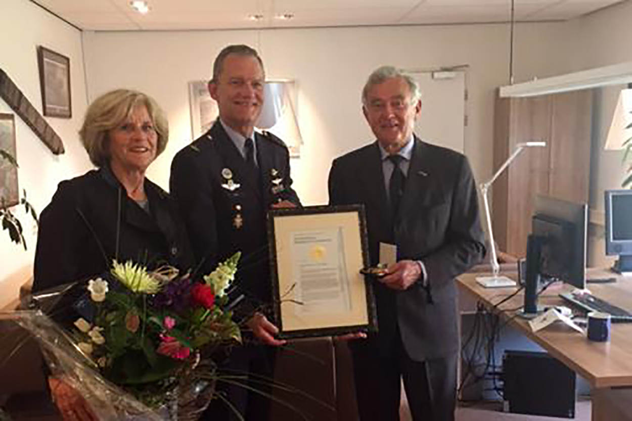Generaal-majoor b.d. Frank Vogelpoel is onlangs onderscheiden met de Erepenning Koninklijke Luchtmacht. Hij kreeg die voor zijn werk voor het Kapittel der Militaire Willems-Orde. C-LSK luitenant-generaal Dennis Luyt speldde hem het eremetaal op vliegbasis Leeuwarden op.