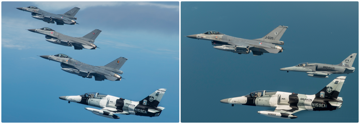 Het heeft wat weg van een luchtgevecht en zo is het ook bedoeld. Scherp draaiend en gebruikmakend van zijn zelfbeschermingsmiddelen, probeert een C-130 van het 336 Squadron boven de Noordzee een ‘vijandelijke’ F-16 van zich af te schudden. De kist piept en kraakt door de optredende zwaartekracht. Hercules en F-16 vliegers trainen voor het eerst in een gezamenlijke wapeninstructeurscursus.