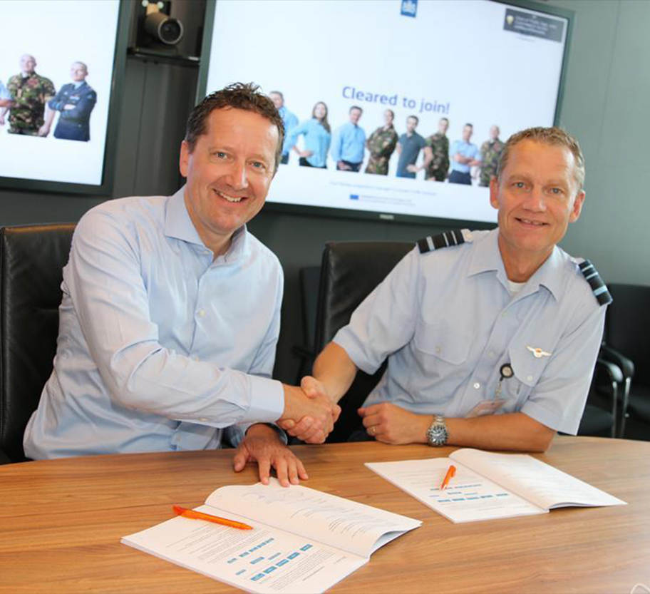 Samen slimmer communiceren. Met die insteek ondertekenden de luchtmacht en Luchtverkeersleiding Nederland (LVNL) op 11 juli een samenwerkingsovereenkomst.