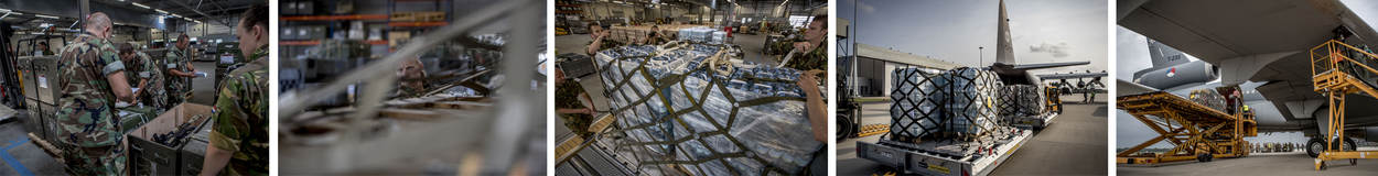 Daar start een paar dagen eerder de grootscheepse noodhulpoperatie voor het zwaar getroffen eiland. Goederen worden uit heel het land aangeleverd per vrachtwagen. Op Eindhoven maakt cargo handling van het 940 Squadron het luchtvracht-gereed. “Op woensdagavond maakten we een assessment: wat kunnen we aanbieden?”, vertelt kapitein Cyriel Poelen, Hoofd Handling. “Je maakt voor het personeel een plan als je grosso modo weet wat er gaat binnenkomen en wanneer. Maar op dit eerste moment is alles nog onduidelijk hoe het gaat verlopen. We rekenen nu op 138 zeecontainers met onder andere water en 250.000 voedselpakketten. Dat verdelen we hier over 1.377 pallets. Mooi om dit te doen. Je creëert het wij-gevoel; dat we als krijgsmacht echt een goede bijdrage kunnen leveren.”