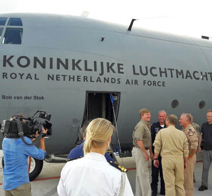 “Goed te doen hoor. De wind is gelukkig iets terug en dat scheelt”, zegt avionicaspecialist sergeant 1 Peter op de vraag of de 35 graden warmte en 99% luchtvochtigheid hem parten spelen. Er komt heel wat bij kijken om een Hercules hier te krijgen. “De kist staat hier niet 1, 2, 3. En ben je geland, dan moet-ie bijna meteen weer weg. Maar ze houden zich goed.” Het was best lastig om het team rond te krijgen, want divers personeel zat in Spanje voor een oefening met de C-130. Peter: “We hebben vrijwilligers gevraagd en gevonden. Maar dit is dan ook een heel speciale inzet. Ad hoc mensen helpen.” ‘Hulpverlening is een heel ander gevoel’, is doc chief sergeant-majoor Stephan met hem eens. Beiden werkten eerder voor Defensie op Curaçao. “We weten nog niet hoe lang we nu hier blijven. In eerste instantie hebben we ingestoken op een week, maar het kan maar zo langer duren.” Goed gehumeurd loopt hij daarna naar de C-130’s, zingend: “And we are not going home, not yet, not yet.”