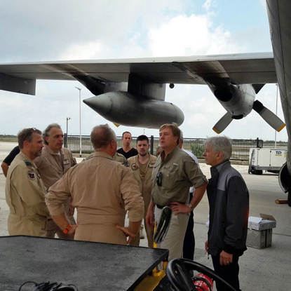 C-130 gezagvoerder majoor Darryl weet op het moment van landen op Hato nog niet exact hoe de baan op Sint-Maarten er bij ligt. “We zijn op alles voorbereid, hebben nachtzichtapparatuur bij ons en we zouden Cargo Drops kunnen doen”. Die blijken niet nodig, want de baan op het zwaar getroffen eiland ligt er op een zandlaag en het ontbreken van vaanverlichting na, goed bij. “Met 6 lampen kun je de baan al goed markeren en zouden we dus ook ’s avonds vluchten kunnen maken.”