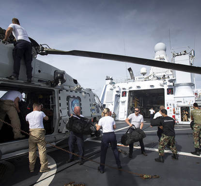 Luitenant ter zee 2OC Wouter, tactical coördinator van de NH90, zit eerste rang. “We vlogen 3 uur rond over de Bovenwindse Eilanden. De schade op Saba en Sint-Eustatius viel mee. Sint-Maarten was een grote ravage. Erg om te zien, maar je focust je vooral rationeel op locaties als de haven en luchthaven en de toegangswegen er naartoe. Voor onszelf zochten we alvast een landingzone om de mariniers een dag later te kunnen bevoorraden. Dat werd een sportstadion waarvan nog maar 1 van de 4 lichtmasten overeind stond.”