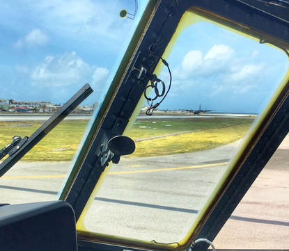 De luchthaven ging een paar dagen na de orkaan open voor militaire vliegtuigen die evacuees van het eiland haalden en hulpgoederen afleverden. “In eerste instantie kreeg ik te horen dat er helemaal niemand was in de toren”, zegt de kapitein. “Maar toen wij hier maandag na de storm aankwamen waren ook de lokale luchtverkeersleiders weer aan het werk. Wij ondersteunen hen overdag. Hun radio's werken bijvoorbeeld niet, dus gebruiken we die van ons. 's Avonds nemen wij hun werk over. Verder zorgen we voor baanlampen voor als er na zonsondergang vliegtuigen landen, want de originele baanverlichting is verwoest.”