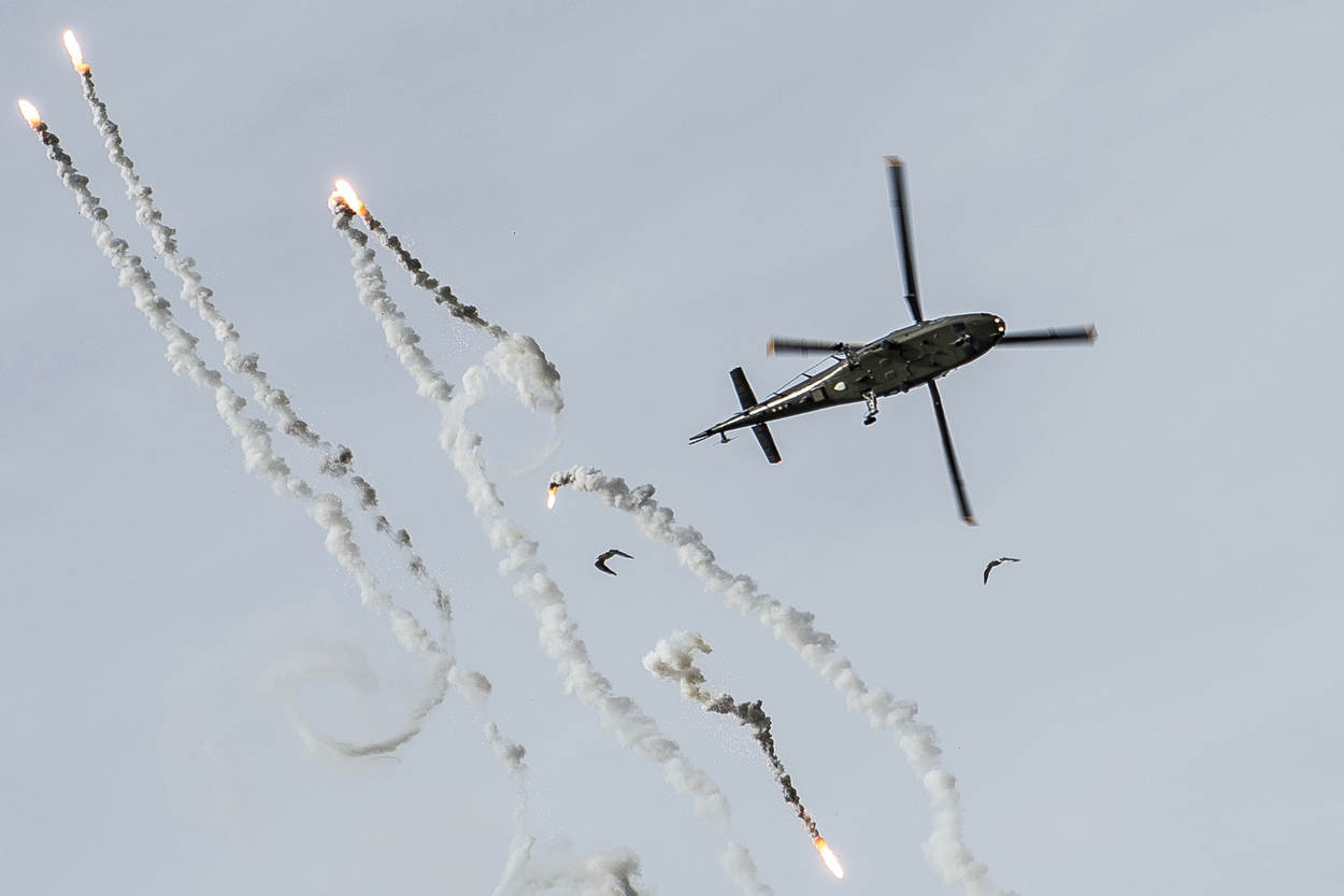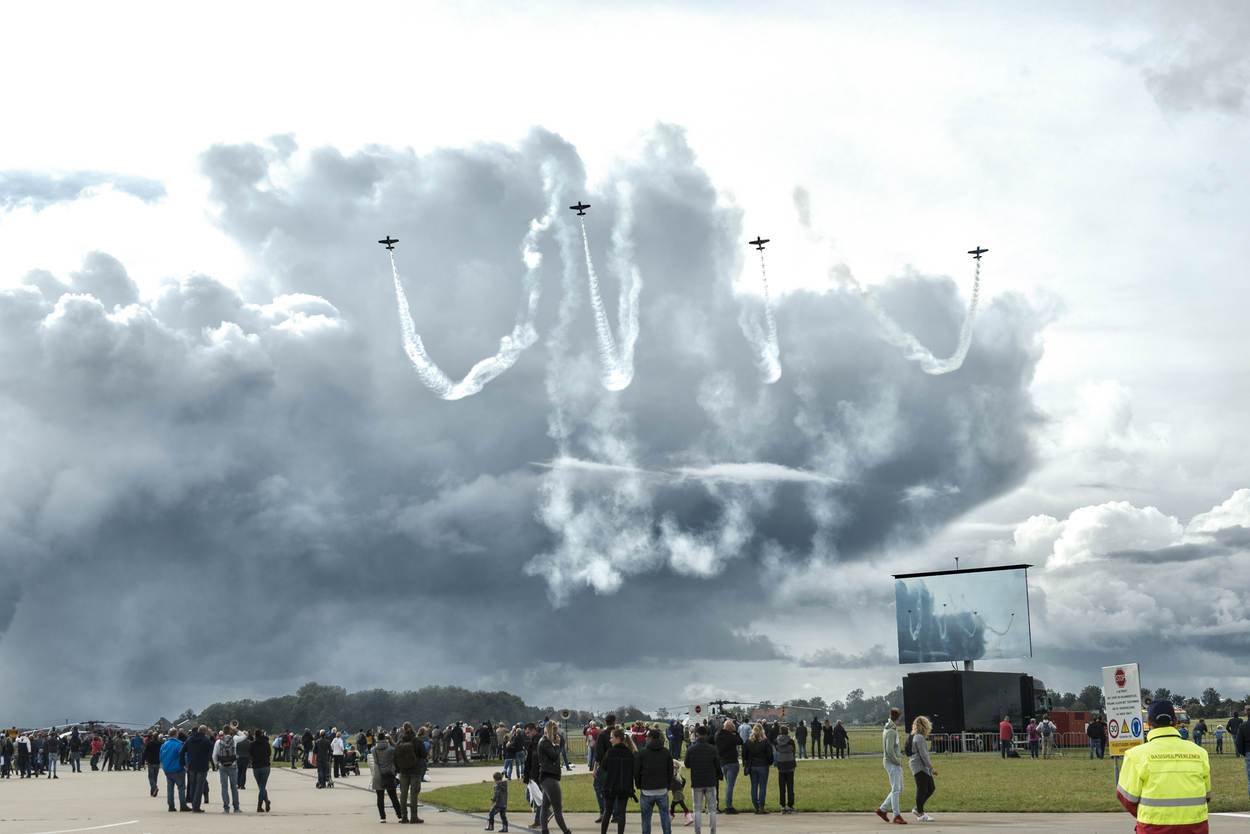 Een sonoor ronkend geluid zwelt aan over de herdenkingsplaats op Maritiem Vliegkamp De Kooy. Een geluid dat ruim 35 jaar lang bekend stond als synoniem voor MLD-helikopters, dat van de Westland Lynx. Bij Defensie inmiddels uitgefaseerd, maar de Duitse Marineflieger vliegt er nog mee. Een welkome gast op de reünie én vliegshow Heldair Show Maritiem (die de dag erna voor het algemene publiek plaatsvindt), zet net voor aanvang van de ceremonie zijn wielen aan de grond en motoren uit. Timing.
