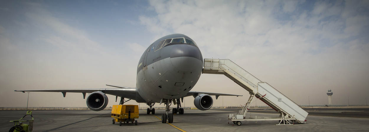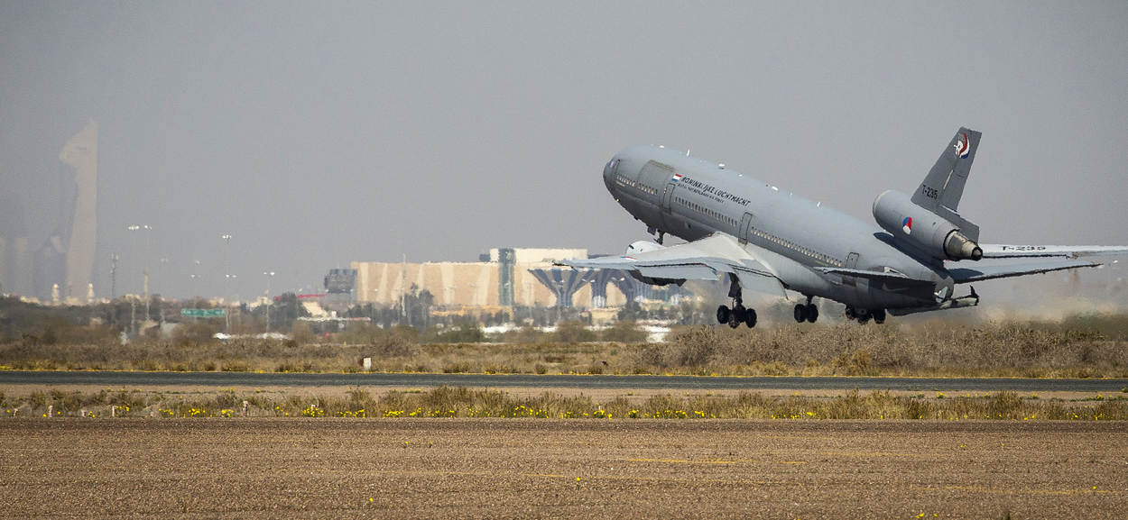 De KDC-10 is zeker niet voor het eerst in het Midden-Oosten. Eerder dit jaar was het tankvliegtuig al 6 weken op dezelfde basis Al Mubarak. Toen kon de inzet niet langer, maar werd al wel een essentiële bijdrage aan de coalitie geleverd en ervaring opgedaan die nu goed van pas komt. In Koeweit vliegen de 2 crews de KDC-10 6 keer per week om kisten van coalitiepartners ‘in het theater’ van peut te voorzien. Niet eerder had het tankvliegtuig van de Koninklijke Luchtmacht zoveel en zoveel verschillende kisten aan de ‘boom’ als op dit moment boven Irak en Oost-Syrië. Na wekenlang intensief gebruikt te zijn, heeft de T-264 ‘Prins Bernhard’ het gebied inmiddels verlaten voor een broodnodige onderhoudsbeurt in Frankrijk. De T-235 ‘Jan Scheffer’ nam het werk over.
