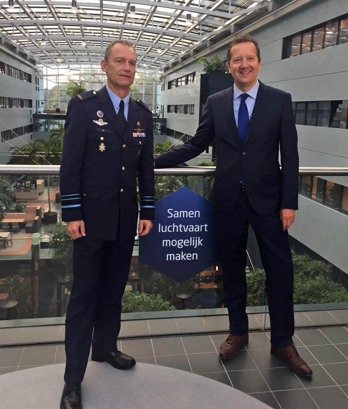 ‘Trots’ voert de boventoon bij C-LSK luitenant-generaal Dennis Luyt en zijn evenknie bij LVNL, Michiel van Dorst. “De colocatie is een belangrijke stap voorwaarts, om beter te kunnen samenwerken in de dagelijkse operatie”, geeft laatstgenoemde aan. “Maar ook om ontwikkelingen voor de toekomst mogelijk te maken, waaronder de herindeling van het luchtruim.” “De colocatie zorgt dat we vanuit sterk samenspel komen tot veilig, efficiënt en kosteneffectief luchtruimgebruik boven Nederland”, vult Luyt vult hem aan. “Gericht op enerzijds de militaire taakuitvoering en anderzijds de dienstverlening en verdere ontwikkeling ten behoeve van de civiele luchtvaart.”