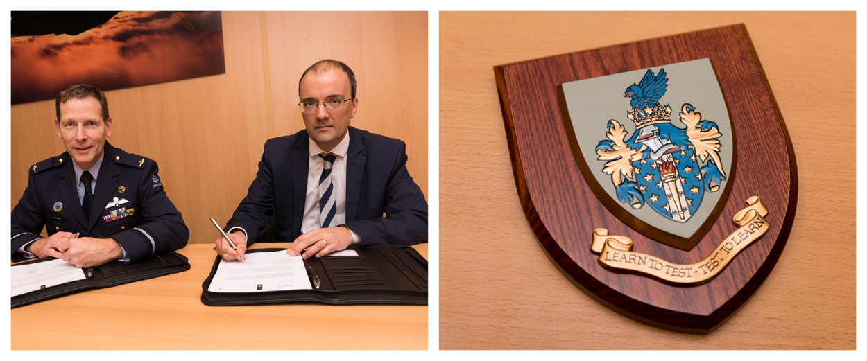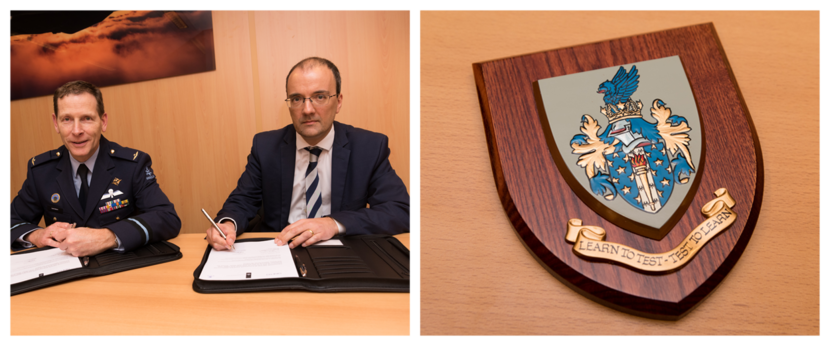 Testvliegers en Flight Test Engineers krijgen namelijk hun opleiding bij Empire Test Pilot School (ETPS) op RAF Boscombe Down. ETPS is opgericht in 1943 en een van de vier grote westerse, militaire testvliegscholen. ETPS heeft sinds de Tweede Wereldoorlog ruim driekwart van de Nederlandse militaire Testvliegers en Flight Test Engineers voorzien van een hoogwaardige, wereldwijd erkende opleiding. Namens Qinetiq ondertekende Nicholas Lay, Operations Director Air and Space Transformation. Met dit contract heeft het CLSK de zekerheid dat er de komende vijf jaar voldoende Nederlandse opleidingsplaatsen beschikbaar zijn. Foto’s: Herman Zonderland