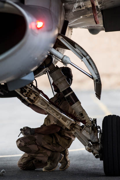 Naast Nederland vliegen Frankrijk, Duitsland, Engeland en Amerika in het gebied. “Eerst wordt het doel geselecteerd, dan kijken ze in Qatar wie de meest geschikte wapens bij zich heeft”, zegt Michel. “Er is nu veel vraag naar Small Diameter Bombs.” Deze SDB’s hangen onder meer onder de Nederlandse F-16’s. Ze zijn een stuk kleiner dan een 500- of 2000-pounder. “SDB’s zijn heel precies en hebben een andere scherfwerking”, legt Michel uit. “Er is een kleinere ontploffing met minder nevenschade. En dat past precies bij deze missie.”