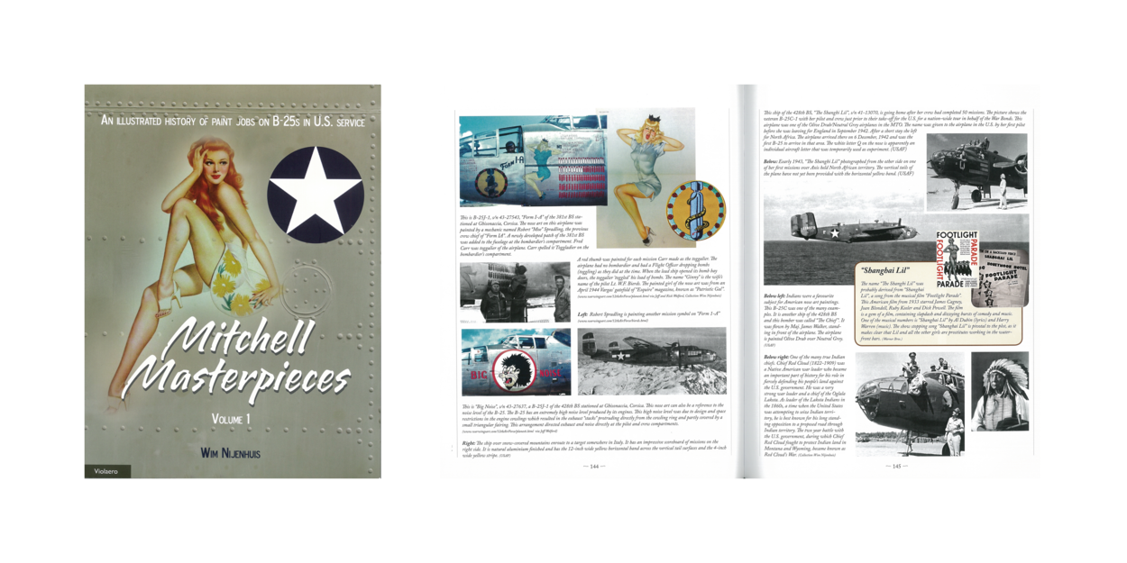 ‘Mitchell Masterpieces – An illustrated history of paint jobs on B-25s in US service, Volume 1’ met ISBN 9789086162369 is geschreven door Wim Nijenhuis en uitgegeven door Violaereo, onderdeel van Lanasta in Emmen. De softback op formaat 22 x 28,5 cm telt 248 pagina’s en is voorzien van vele honderden zwart-wit en kleurenfoto’s. Het boek kost € 29,95. Kijk voor meer informatie op www.lanasta.com.