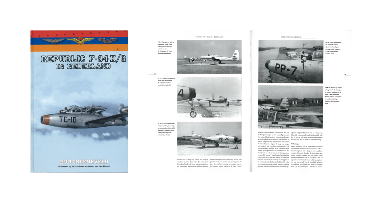‘Republic F-84E/G in Nederland’ met ISBN 9789082647518, is geschreven door Hub Groeneveld en gebaseerd op de archieven van Coen van den Heuvel. De hardback op formaat 21,5 x 30,5 cm is uitgegeven door NL Books. Het boek telt 384 pagina’s met Nederlandse tekst en is voorzien van vele honderden zwart-wit en ongeveer 20 kleurenfoto’s en afbeeldingen en 4 pagina’s met kleurenprofielen. Het kost € 42,50. Kijk voor meer informatie op www.aviation-warbooks.nl.