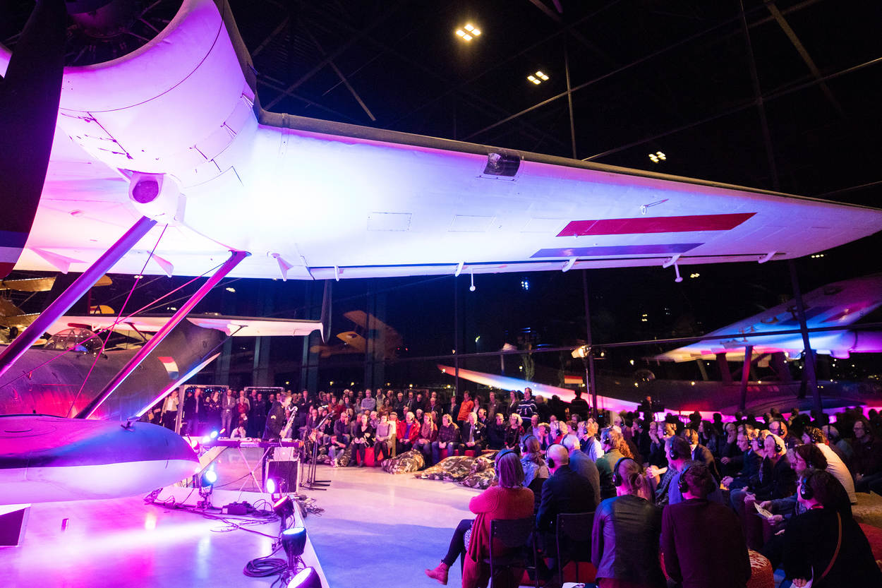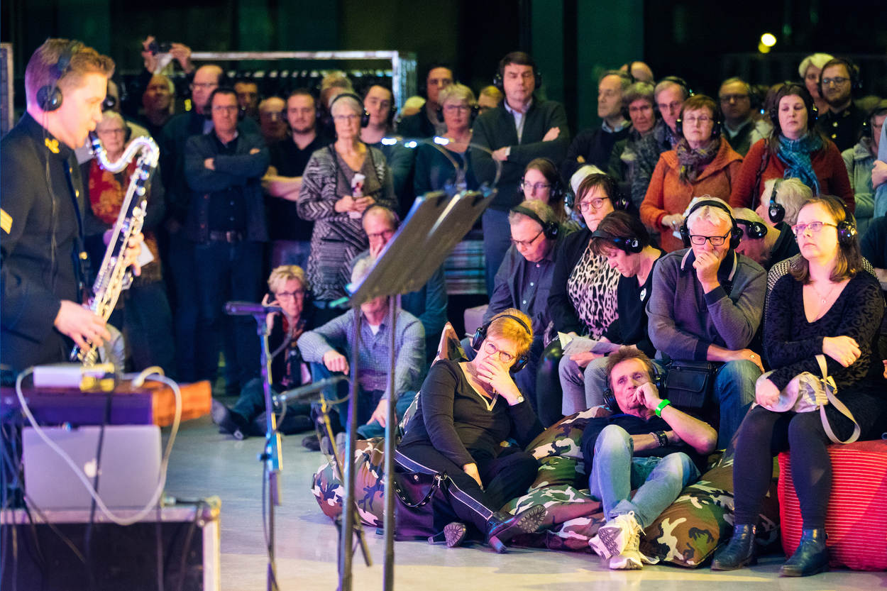 Op de Nacht is genoeg te beluisteren, voor elk wat wils. Een van de ‘hoogtepunten’ was de masterclass over het signaal Taptoe (Nederlands) en Last Post (internationaal). Drie trompettisten onder wie adjudant van de luchtmacht John Bessems, gaven tekst en uitleg over de bijzondere momenten waarop zij speelden; bij de herdenking van de Herculesramp op Vliegbasis Eindhoven, de begrafenis van prins Bernhard in Delft en diverse terugkomsten van stoffelijke overschotten van de ramp met MH17, wederom op Eindhoven. Bessems over MH17: “Heel aangrijpend. De familie stond 20 meter achter me en ik hoorde ze reageren. Dan moet je je écht afsluiten.” Foto rechts: Arno Marchand