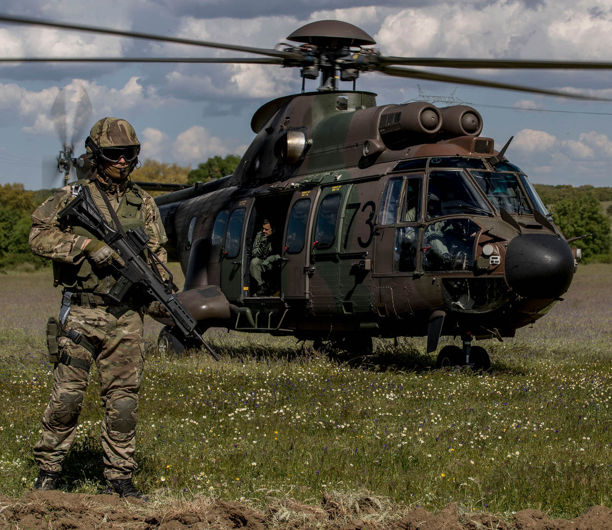 Het boze boertje houdt zich niet in tegen de net uitgestegen, stoer uitziende commando’s. Of die helikopters kunnen ophouden met laagvliegen over zijn weitje. De drachtige koeien raken er door van streek. “Binnen een paar minuten is alles over en zijn we weer weg”, sussen de mannen-in-het-groen de situatie. Met veel geraas drukt een Hongaarse Mi-24 Hip tientallen meters verderop zijn wielen tegen de grond.