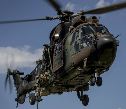 “Ik doe dit werk al zo’n 20 jaar en dit vind ik nog steeds het allerleukst”, verkondigt commandant van een Mobile Air Operations Team sergeant-majoor Patrick enthousiast. Voor een extractie van Portugese landmachters ergens in de vrije natuur staat volgens schema een Nederlandse Cougar gepland. Maar 4 Duitse NH90’s dienen zich eerder aan. Nu is 4 een beetje veel om een handjevol personeel te vervoeren, maar toch. “Voordat de Duitse bemanningen denken aan samenwerken met andere EU-partners willen ze eerst de coördinatie met ‘eigen volk’ onder de knie krijgen”, legt Cuppes uit. “Dat is het mooie van Hot Blade. Deelnemers mogen van tevoren hun oefendoelen inschieten. Die verwerken we vervolgens in het scenario.”