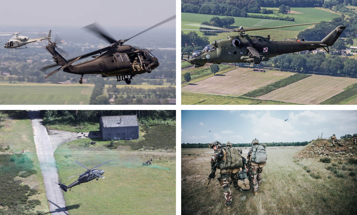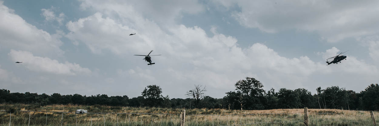 Een rustig dagje op de Veluwe, pak ‘m beet op de Eder Heide. Van midden tot eind mei kon je dan maar zo eens getrakteerd worden op een ‘vliegdemonstratie’. Maar wel 1 met een zeer serieus karakter, namelijk het redden van geïsoleerde personen in vijandelijk gebied. Diverse types transporthelikopters duiken ineens over de bosrand heen en landen op het open heideterrein, ondertussen vanuit de lucht gedekt door laag overvliegende gevechtshelikopters. Dagjesmensen met fiets aan de hand kijken met open mond. Vaders met kinderen komen voorzichtig dichterbij. Ze vinden het schouwspel geweldig.