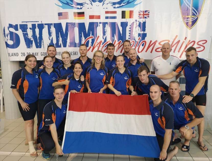 Ook de heren gepresteerd uitstekend. Op de 12 zwemafstanden sleepten zij 2 zilveren en 4 bronzen plakken in de wacht. Daarmee werden ze uiteindelijk 5e. Foto: Sectie Militaire Sport