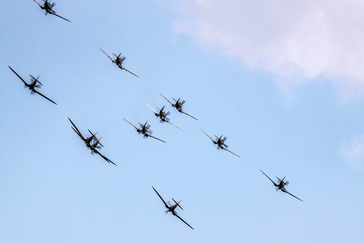 Geen parade is compleet zonder de aanwezigheid van de Battle of Britain Memorial Flight, deze keer met Lancaster, Spitfires en Hurricanes. Foto: Arno Marchand