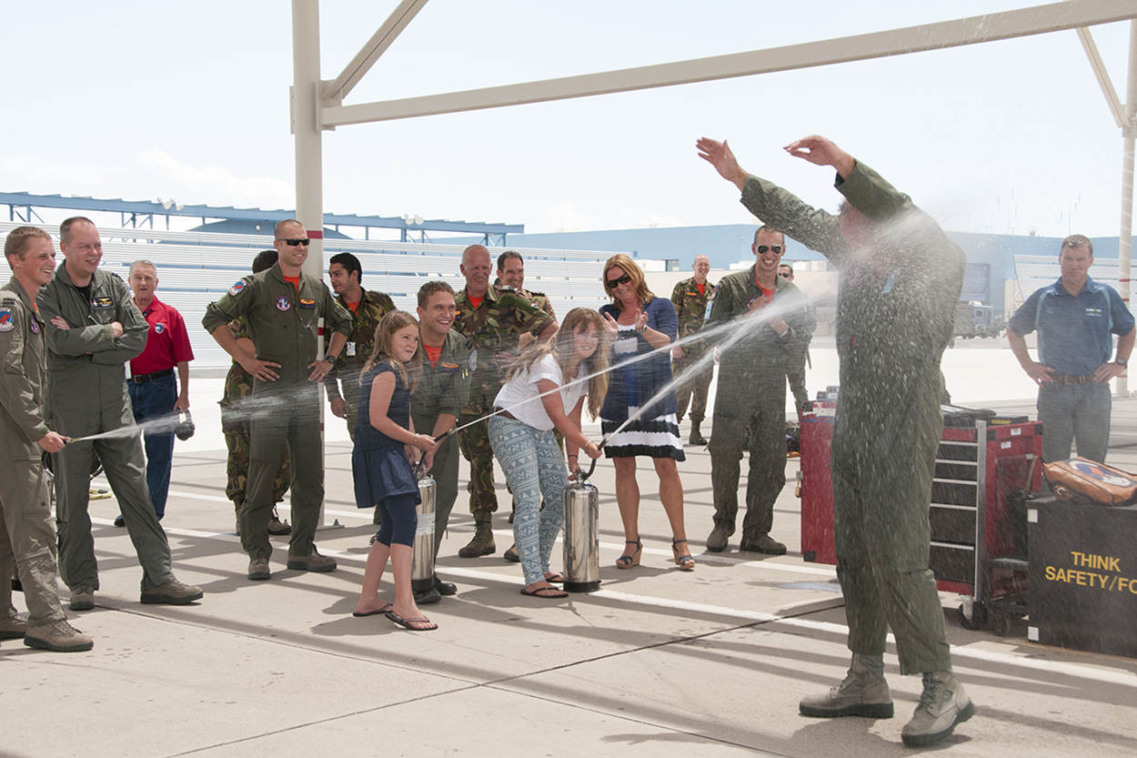 Schonk vond zijn periode als FWIT-supervisor het leukste. “Je bent dan zo internationaal bezig. In 2006 heb ik m’n nek uitgestoken om Portugal er bij te krijgen en na jaren de Denen ook weer. Dat is gelukt. Door de FWIT heb je zo’n groot internationaal netwerk. Zo kon ik makkelijk contact in Noorwegen leggen voor het voorbereiden van onze F-35 opleiding op Luke wat de Noren al doen. Ik zou er ook graag commandant worden, want ik wil operationele kennis delen. Niet als een plant op kantoor staan. Mijn hart ligt bij het vliegen, maar ik zou zonder kunnen. Als ik m’n ervaring maar kan gebruiken.