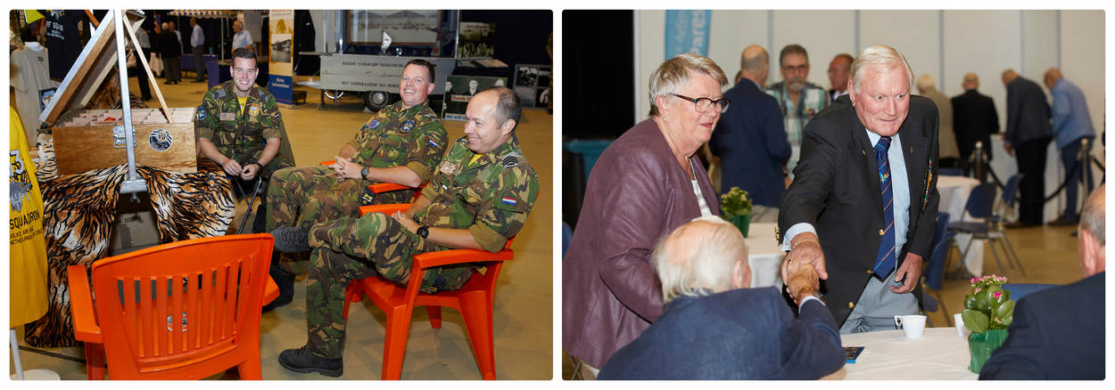 "Altijd heel gezellig" , omschrijft PC-LSK generaal-majoor Mario Verbeek het jaarlijkse evenement. Als Inspecteur der Luchtmachtveteranen is hij gastheer en uiteraard vaste bezoeker. “Ik zag flight engineers van de C-130 aan tafel zitten met vakgenoten van vroeger. Da’s léuk! Mensen komen hier om te praten.” Want iedere aanwezige heeft een verhaal, evenredig aan het dagthema. Zo ook sergeant Romy van der Veen-Lamers (29) die individueel op uitzending ging. “Ik wist destijds niet waaraan ik begon. 2 weken voordat ik moest vertrekken naar Mali, kreeg ik pas een oproep. Er was iemand uitgevallen. 'Of ik als Chinook-technicus mee kon met het helidet.' Ik was al eerder met 298 op oefening geweest, maar dit was de 1e keer écht weg. 'Dit is een kans; pak ‘m!’, dacht ik. Maar wél spannend. Alleen achter het detachement aan dat al in Mali was. Maar ik zou het zo weer doen, want het was een heel mooie tijd.”