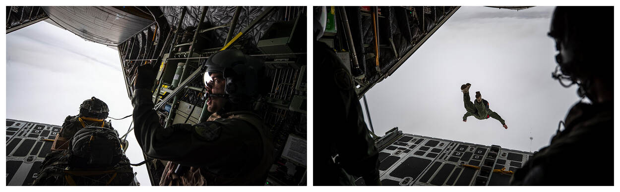 “We zijn in transitie van de logistieke taak, die we tot een jaar of 5 geleden primair deden, naar een joint operationeel concept. In samenwerking met het CLAS leggen we ons meer toe op onze tactische taken, waaronder het uitvoeren van airdrops. Denk aan het droppen van goederen, HAHO- en HALO-vluchten; het ‘hoog eruit’ en respectievelijk hoog of laag openen van het valscherm. Daarop moet je natuurlijk trainen. Met elkaar.”