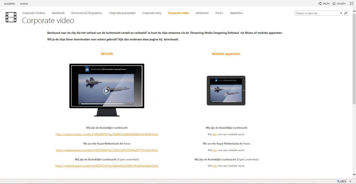 Vraag is of er iemand zit te wachten op die toolbox. “Jazeker”, zegt Mateijsen stellig. “Medewerkers willen aan hun zakenrelaties, familie of de schoolklas van hun kinderen graag vertellen over hun werk. Men komt dan vaak bij de – lokale – communicatieafdeling op het net met de vraag om foto’s, filmpjes, emblemen en diverse feiten & cijfers. Al dit soort zaken hebben we nu gebundeld op 1 intranetpagina (zie de link onderaan dit artikel, red.).”