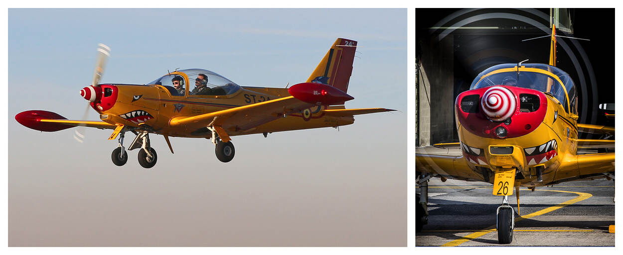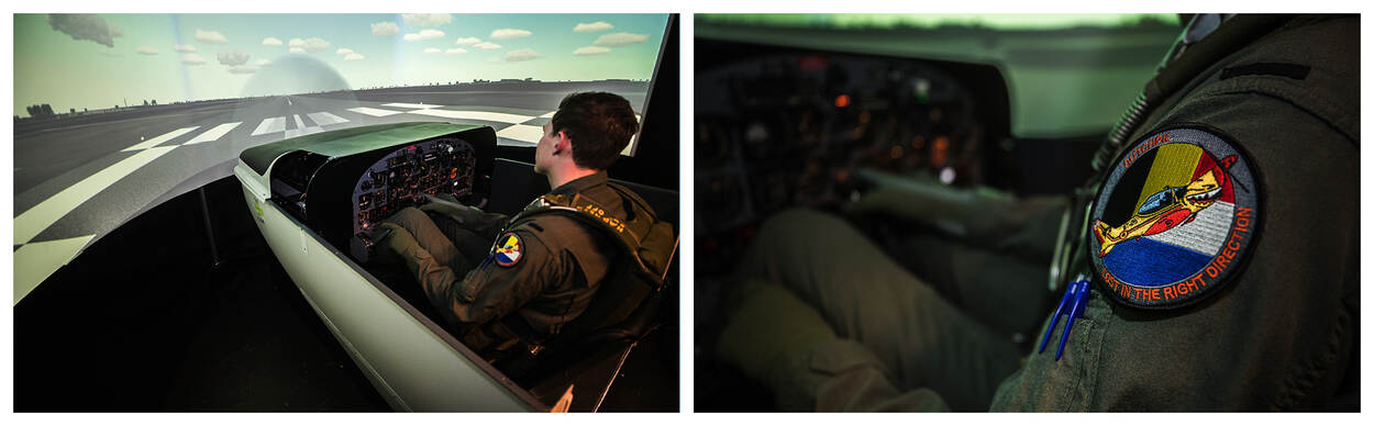 België? Dat komt voor de 5 vliegers in opleiding ook als een verrassing. “We hadden de grondschool van de EMVO (Elementaire Militaire Vlieger Opleiding, red.) op vliegbasis Woensdrecht er bijna opzitten”, vertelt Arjan (22). “Toen bleek dat we daar niet konden blijven voor de initiële opleiding.” Op de vliegbasis vindt een update plaats aan de PC-7 en er zijn minder instructeurs beschikbaar. Dus maken de leerlingen in Beauvechain hun eerste vlieguren in de Marchetti. “Een half jaar naar de vliegbasis Beauvechain was voor ons even schakelen, maar als je iets zo graag wilt, maakt het eigenlijk weinig uit waar je het vak leert.”