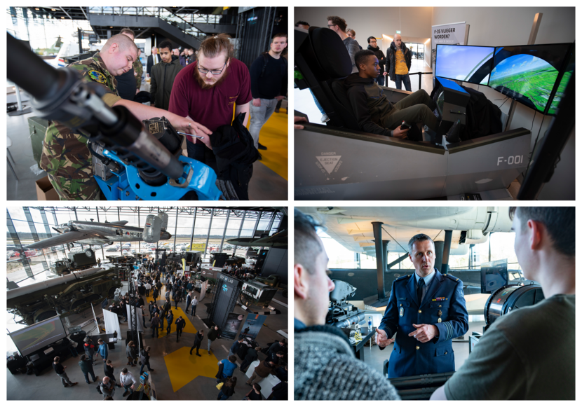 Omgeven door historische vliegtoestellen kon techtalent 7 maart kennis maken met Defensie tijdens DefLab. 3.000 bezoekers kwamen naar het nieuwe tech-evenement in het Nationaal Militair Museum (NMM), bedoeld om technici en ICT’ers te interesseren voor een baan bij de krijgsmacht.