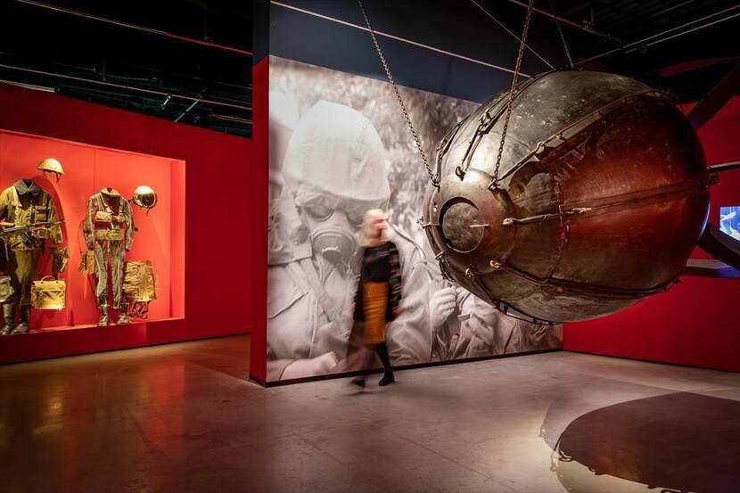 De minister zei dit naast een van ‘de spierballen van toen’: atoombom Fat Man. Deze en vele andere objecten vormen een tentoonstelling die de dreiging van de Koude Oorlog tastbaar maakt, zoals een Poolse militaire stafkaart met nucleaire doelen in Nederland.