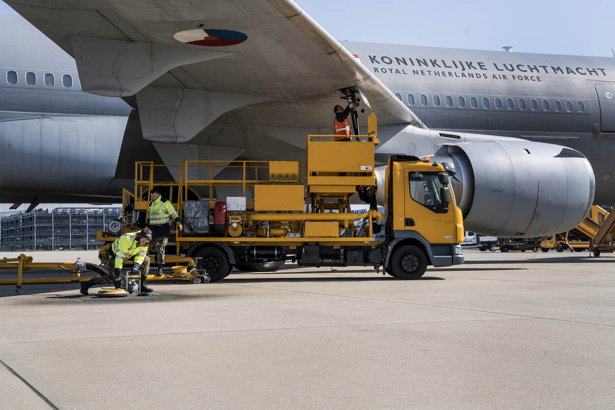 "Je merkt dat de oefening groter wordt, maar voor ons maakt dat niet zo heel veel uit”, geeft majoor Christian Agerbeek, commandant 941 Squadron aan. “Wij leveren de meeste van onze diensten aan Eindhoven Airport die per jaar meer dan 38.500 vliegbewegingen heeft. Daar kunnen de tankers prima bij, maar het landen, tanken en weer opstijgen staat tijdens zo’n oefening bij ons natuurlijk wel op 1. We zijn per slot van rekening een militaire vliegbasis en wíj zijn – bewust – militaire luchtverkeersleiders. Het vertrek van de tankvliegtuigen komt echt op de minuut aan. Het is soms een beetje passen en meten, en in een gaatje van 5 minuten net een andere vlucht laten landen of opstijgen. Extra uitdaging is dat we 1 stuk van de taxibaan vanwege onderhoudswerkzaamheden tijdelijk missen, waardoor vliegverkeer soms even moet ‘backtracken’ over de hoofdbaan. In de eerste week hadden we ook nog de oefening Orange Bull waarbij C-130's tactische approaches deden, bijvoorbeeld cross over het veld. Best wel even een uitdaging, maar daarvoor zijn we dan ook aangenomen.”