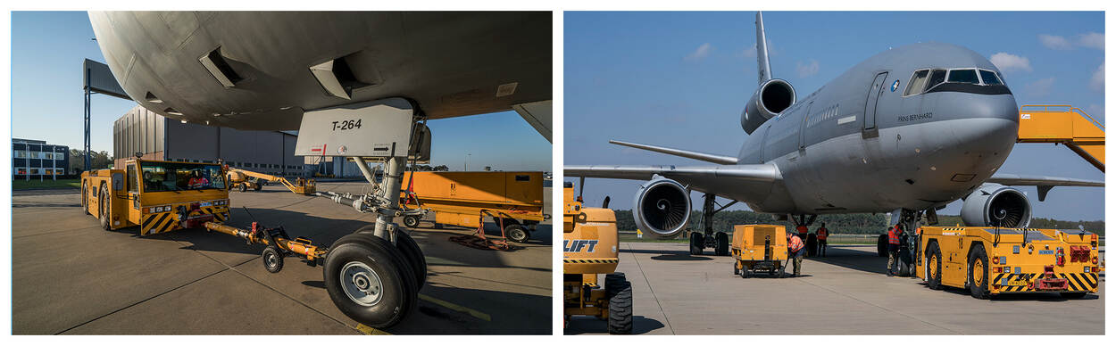 “Voor ons is de EART bijna ‘business as usual’”, zegt luitenant-kolonel Robin Schoonen, hoofd Onderhoud en Logistiek op Eindhoven. “Dat is zeker niet arrogant bedoeld, maar we zijn gewend aan grote kisten. Toestellen als de C-17, Airbus A330 en dergelijke komen hier dagelijks. Die moeten we ook laden, lossen, tanken. Handling van de kisten is voor ons geen probleem. Ze passen zeker op de platformen en indien nodig, kan er 1 in de KDC-10 hangaar.