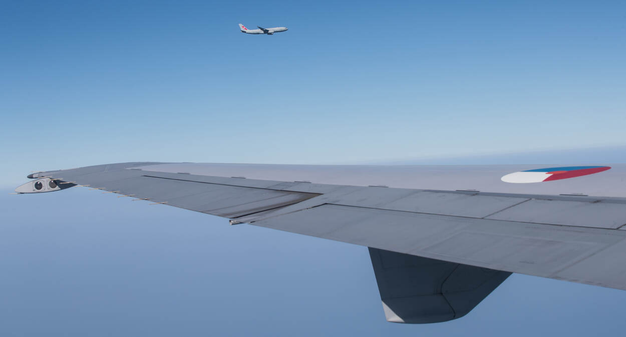 Klaar met tanken boven de Noordzee vliegt de Duitse Airbus nog een klein uur rondjes in de tanker track. Voor onverwachte klanten, maar die komen er niet. Met de ondersteuning van deze Frisian Flag-missie zit de vlucht er echter nog niet op. Een van de onderdelen van de EART is met meerdere tankers in formatie vliegen. Klinkt simpel, is het niet. Met maar 1 nautical mile ofwel ruim 1,8 kilometer afstand en hoogteverschil van 500 voet, ruim 150 meter – en dan denkbeeldig er ook nog receivers bij – is dat echt een procedure die geoefend moet worden.