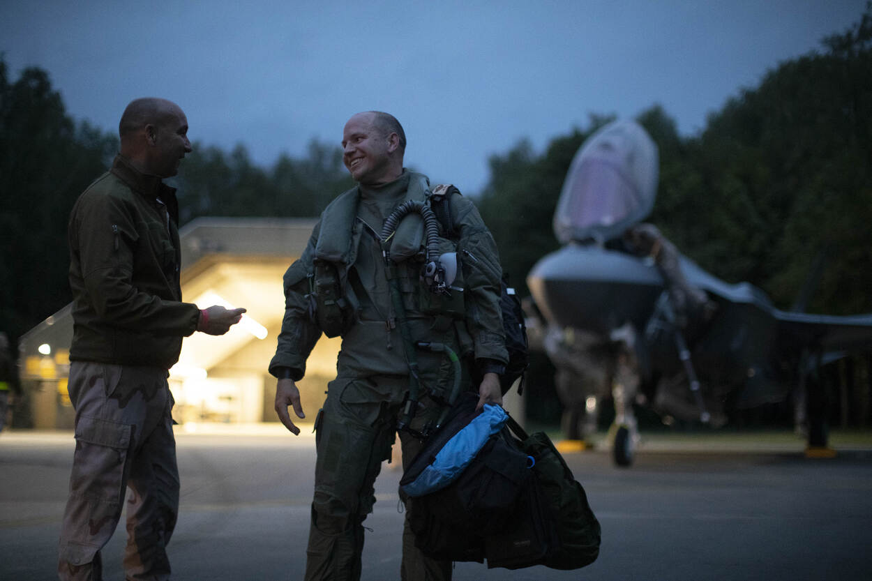 “Initieel wilden we deze vorm van deployment elders in de Verenigde Staten doen”, vertelt Knight. Mede omdat we dan ook aanwezig kunnen zijn tijdens de Luchtmachtdagen, viel de keuze op Vlieland. Volgens de vlieger is een Rapid Reaction-missie met slechts twee toestellen alleen mogelijk met vliegtuigen van de vijfde generatie. “Om ongeschonden bij het doel te komen, hebben oudere gevechtsvliegtuigen een hogere mate van luchtoverwicht nodig en dus de hulp van een ondersteunende luchtvloot. Je spreekt dan niet een korte, rappe inzet, maar van een omvangrijke luchtoperatie. “Door zijn stealth-eigenschappen en geavanceerde sensoren kan de F-35 het allemaal in z’n eentje. Zodra hij opstijgt, ben je hem kwijt.” Daarentegen ziet de vlieger in de cockpit van het toestel in een oogwenk heel precies wat er om hem heen gebeurt. “Qua informatievergaring is het net een grote stofzuiger. Enorm voordeel is de fusie van de sensoren met de complexe omgeving. Met een F-16 zou je deze missie nooit kunnen doen.”