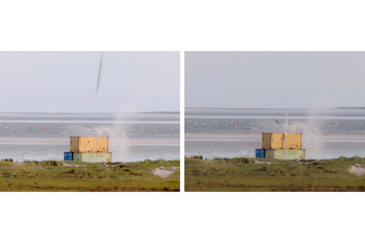 Een doffe klap van een oefenbom, opspattend zand en wegstuivende meeuwen markeerden op 13 juni de Nederlandse militaire luchtvaarthistorie. Voor het eerst dropten F-35’s oefenbommen op Nederlandse bodem. Om precies te zijn op de zandvlakte van het militaire oefenterrein de Cornfield Range op Vlieland.