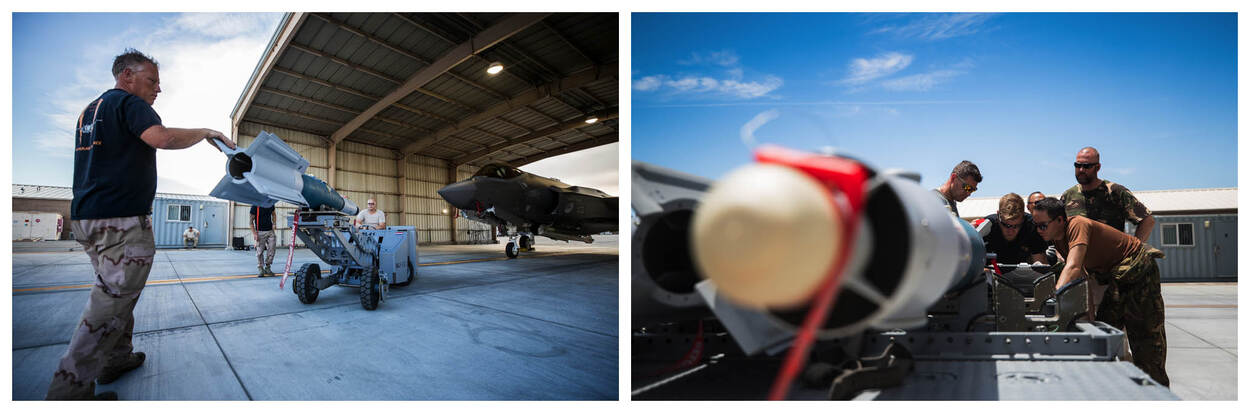 Om de test representatief te laten verlopen, vliegt ook een Amerikaanse C-17 Globemaster met de benodigde gronduitrusting en (her-)bewapening op eigen houtje naar Europa. De bommen die de F-35’s in Nederland afwerpen, vervoert deze machine niet. Die nemen beide toestellen namelijk zelf mee.