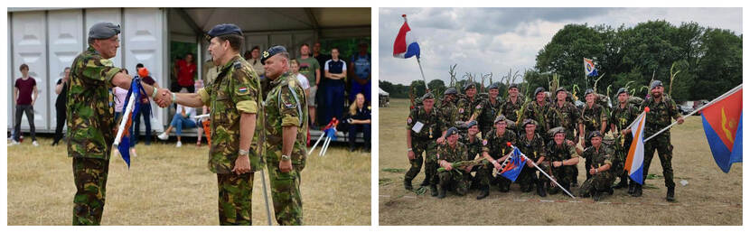 Bij deze 103e editie van het wandelevenement kreeg detachementscommandant kapitein Toine Broers van het14-koppige Main Support Base detachement het vaantjeuit handen van commodore Richard Laurijssen, die zelf individueel meeliep. Het detachement liep ook voor het goede doel; zoveel mogelijk geld ophalen voor het Wilhelmina Kinderziekenhuis. Foto’s: KLu