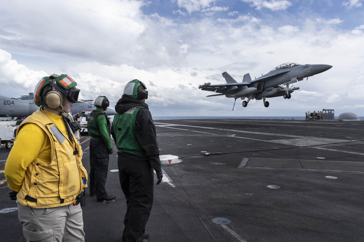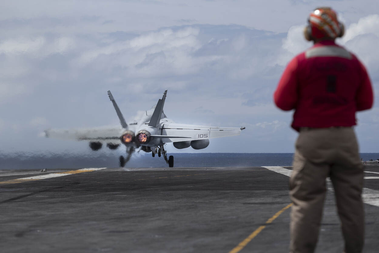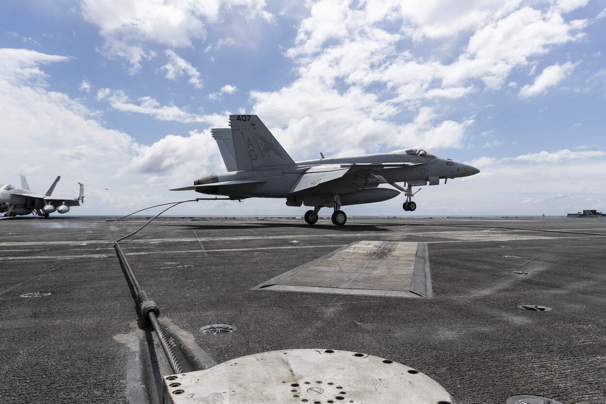Zien hoe een F/A-18 Hornet weer aan boord terugkomt? Bekijk dan deze carrousel.