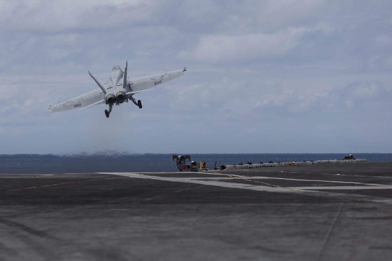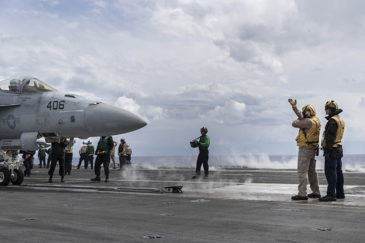 Zien hoe een F/A-18 Hornet van boord wordt geschoten? Bekijk dan deze carrousel.