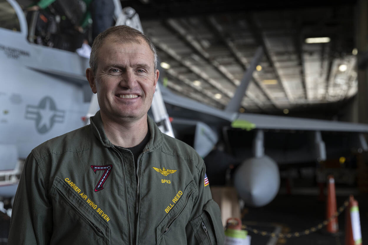 De EA-18 Growler, het elektronische oorlogsvoeringstoestel, vliegt op de Lincoln alleen met marinepersoneel. “Er zijn ook squadrons waarin gecombineerde bemanningen zitten van de luchtmacht én marine, maar niet bij ons aan boord”, verduidelijkt Commandant Carrier Air Wing 7 captain Bill Reed. De commandant van de wing aan boord van de Lincoln is 23 jaar vlieger en klokte 5000 uur, het meest in E-2C. “Maar nu als ‘CAG’ ben ik gekwalificeerd om in alle types te vliegen. Dat is geweldig! We hebben 8 squadrons aan boord en 1 detachement met transportvliegtuigen. Eigenlijk zijn we gewoon een volledige luchtmacht op zee. We hebben alleen een start- en landingsbaan van 60 meter in plaats van ruim 2 kilometer.”