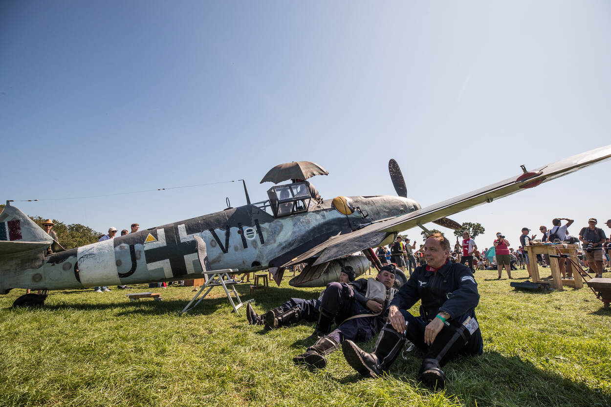 Daar was voor de bezoekers veel te zien, van tentenkampen zoals gebruikt door de Geallieerden én Duitsers met bijvoorbeeld een Messerschmitt 109 ‘in onderhoud’, tot een flightline met historische vliegtuigen als Spitfires, Hurricane, P-51 Mustang en Dakota. De ster van de show, die overigens alleen in de lucht acte de présence zou geven, lukt het echter niet uit Engeland te vertrekken. De Boeing B-17 Flying Fortress ‘Sally B’ heeft een technisch probleem. Tot halverwege de dag is op thuisbasis Duxford geprobeerd het voor Europa unieke toestel aan de praat te krijgen, maar het mocht niet baten. Van een heel andere orde, maar evenzo uniek, was de aanwezigheid van een Lysander waarvan er wereldwijd nog geen handvol vliegwaardig is.