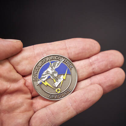 De geschiedenis van de graduation coin gaat bijna honderd jaar terug en begint in Amerika. De commandanten van onderdelen lieten daar vaak een eigen coin maken voor manschappen om de saamhorigheid te versterken. In 2009 deed de coin zijn intrede op de SAC. Alle medewerkers krijgen een unieke coin met nummer als blijk van verbondenheid met elkaar en de school. Foto’s: Phil Nijhuis