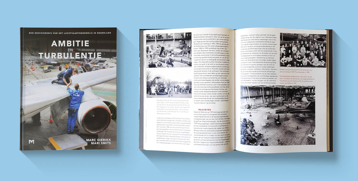 ‘Ambitie en turbulentie – Een geschiedenis van het luchtvaartonderwijs in Nederland’ met ISBN 9789053455555 is geschreven door Marc Dierikx en Mari Smits. Het boek is uitgegeven door Uitgeverij Matrijs in Utrecht in samenwerking met MBO College Airport. De hardback op formaat 22 x 28 cm telt 160 bladzijden en is voorzie van vele honderden kleuren- en zwart-witfoto’s. De prijs bedraagt € 24,95 en het boek is onder andere bestelbaar via de webwinkel. Kijk daarvoor op www.matrijs.com.