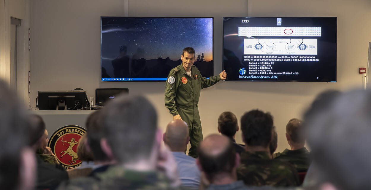 ‘Hij lijkt op een gewone vlieger’ omschrijft commodore Robert Adang, Commandant Defensie Helikopter Commando (DHC) majoor Mark Stallen. Maar deze heeft een bijzondere gave: zoeken naar bijzonderheden tussen de ‘nullen’ en ‘enen’ waaruit data is opgebouwd. Als de Apache-vlieger iets afwijkends ziet, weet hij dat ‘een’ systeem op dat moment een actie uitvoert. Wat dat betekent voor het optreden van Apaches zocht hij uit bij innovatieafdeling AIR.