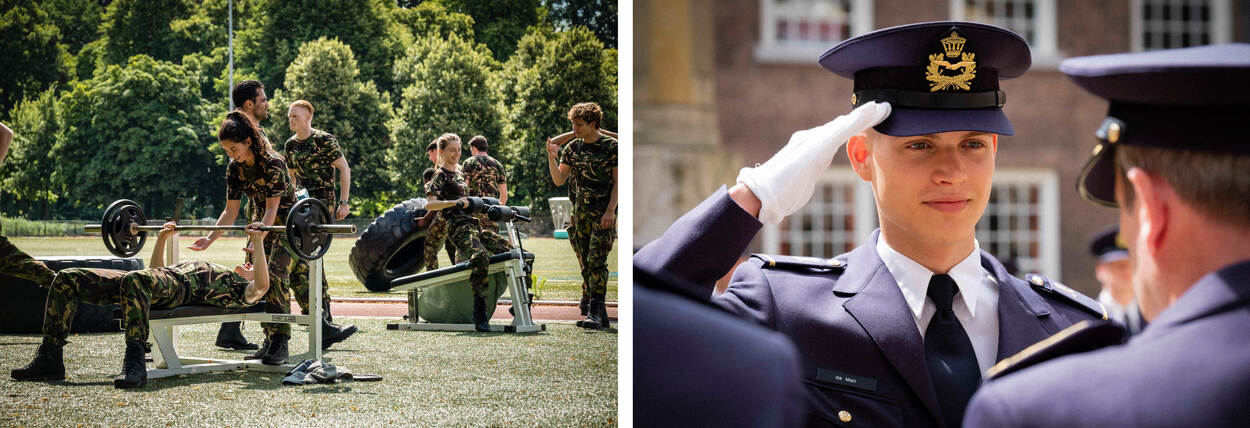 De studenten tijdens hun opleiding op Woensdrecht en bij de brevettering op de KMA.